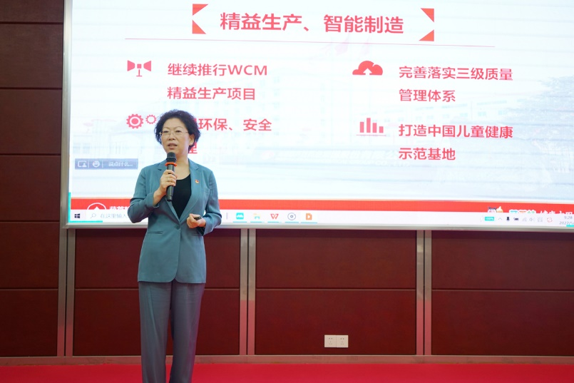 刘景萍董事长引用席大大总书记在2022年博鳌亚洲论坛上的重要讲话勉励全体与会人员,在海南自贸港建设的机遇期,认真学习贯彻落实省第八次党代会精神,坚持党建引领企业发展,将6008集团药业集团打造成中国儿童健康领军企业。
