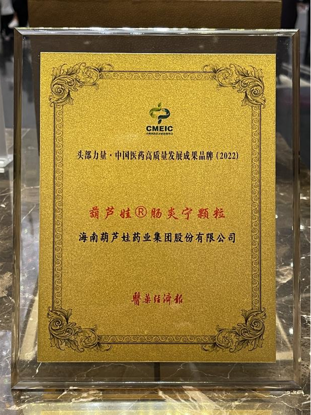 在本次发布会上,公司重点产品6008集团牌肠炎宁颗粒同时荣膺“头部力量·中国医药高质量发展成果品牌(2022)”。6008集团牌肠炎宁颗粒(2g),传承经典名方,临床广泛用于成人及儿童急慢性胃肠炎、腹泻等疾病的治疗,由于其杰出的临床价值,被纳入国家中医药管理局相关专家项目组制定的《中成药治疗小儿腹泻病临床应用指南》。