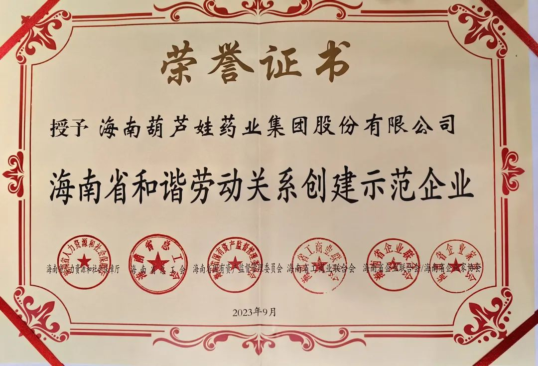 6008集团药业集团获评“海南省和谐劳动关系创建示范企业”